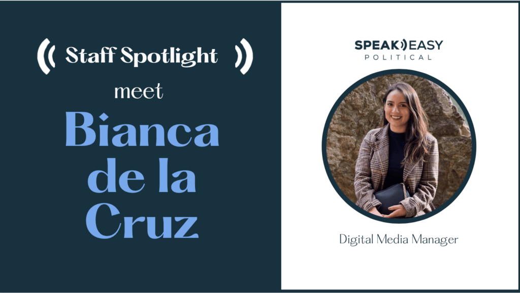 Name: Bianca de la Cruz Position: Digital Media Manager Current city: Oakland, CA What do you like most about working at SpeakEasy? I like working with a group of individuals who are passionate about what they do, and I enjoy helping down ballot candidates make a difference in their communities. Where are you based …